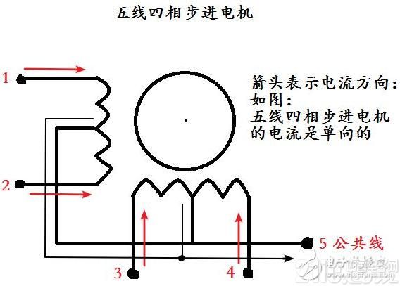 步進(jìn)電機(jī)的“相” 就是說(shuō)明步進(jìn)電機(jī)有幾個(gè)線圈(也叫做繞組)。 “線” 就是說(shuō)明步進(jìn)電機(jī)有幾個(gè)接線口。 “極性” 分為 單極性 和 雙極性。如果步進(jìn)電機(jī)的線圈是可以雙向?qū)щ姷模敲催@個(gè)步進(jìn)電機(jī)就是雙極性的,相反,如果步進(jìn)電機(jī)的線圈是只允許單向?qū)щ姷模敲催@個(gè)步進(jìn)電機(jī)就是單極性的。 上面的三個(gè)只要知道其中兩個(gè),就可以推斷出第三個(gè)。 如: 五線四相步進(jìn)電機(jī) 就是有5個(gè)接線口,4個(gè)線圈。 由于有五個(gè)接線頭,即接線頭的個(gè)數(shù)是奇數(shù)個(gè),也就是說(shuō)有一個(gè)接線頭是公共接頭,所以它的線圈的導(dǎo)電方式就只允許是 單向的 ,即這個(gè)步進(jìn)電機(jī)是單極性的。如下圖: