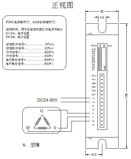 驅(qū)動(dòng)器接線、尺寸示意圖