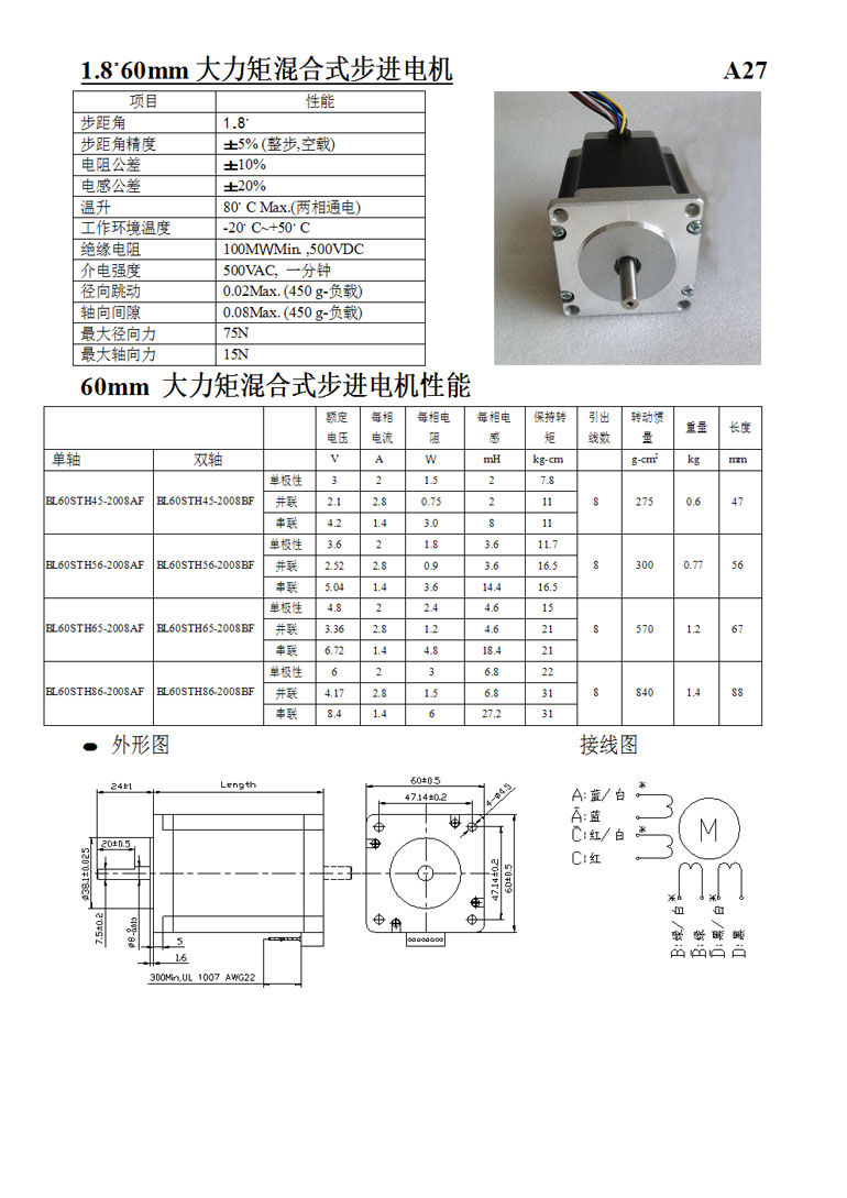 | 1.8°60mm兩相大力矩混合式步進(jìn)電機(jī) |